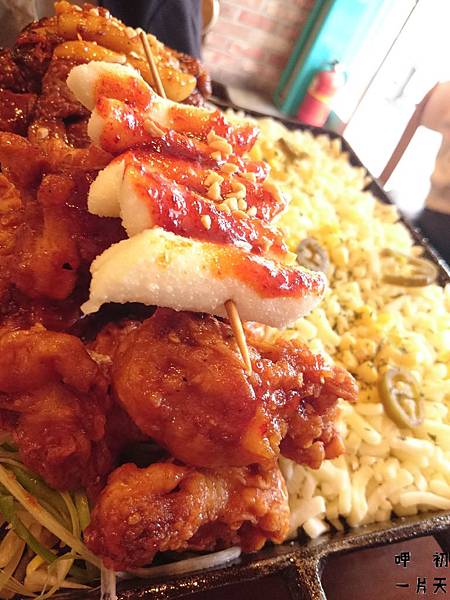 炸雞 甜辣甜辣 單吃就不錯了 加上起司雖然還不錯 但味道是分開的