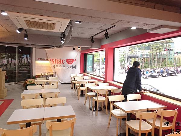 很喜歡弘益大學這家Isaac 有一大片的開放式窗戶 不論甚麼天氣來都很舒服 可以放肆的看過往行人