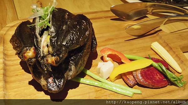最好事先預約 因為數量有限 是用三個月大的烏骨雞 清空內臟後加入米飯 白豆等香料