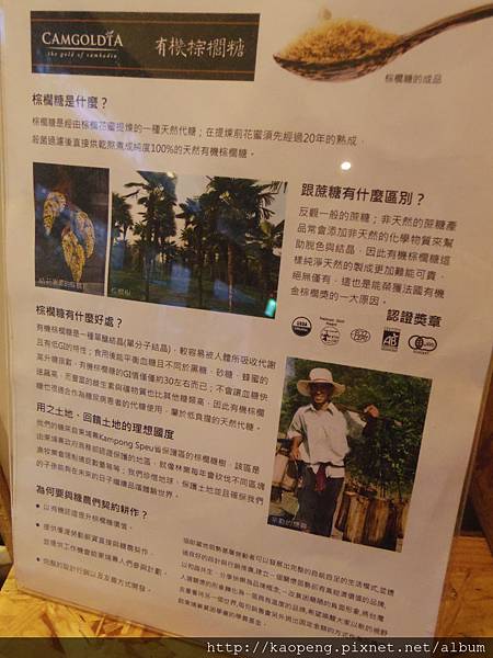 店內的有機棕櫚糖CAMGOLDIA是跟柬埔寨NGO等社會企業合作的商品 不只有棕櫚糖買還有其他各種NGO的商品