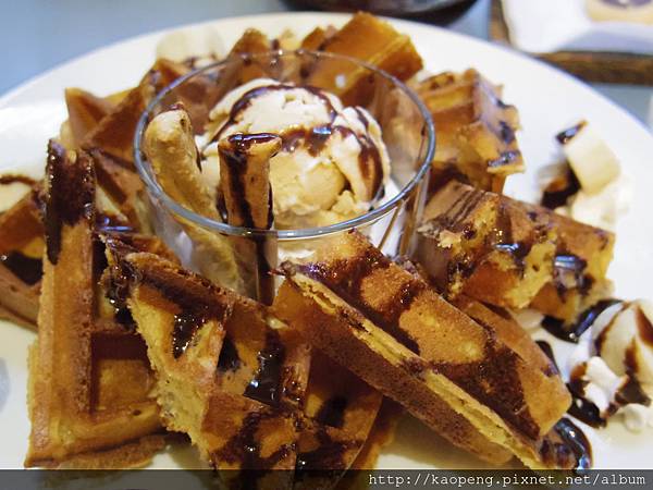 鬆餅糊是店家親自調配 經過一夜低溫發酵 並沒有加發泡粉 難怪口感跟一般鬆餅相差甚多 再加上棕櫚糖的提味 想不好吃都難