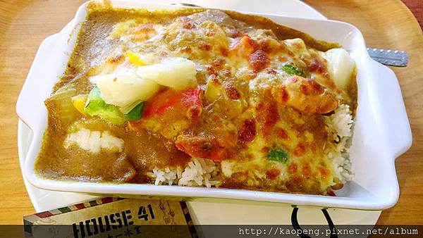海鮮給的大方但不太新鮮 因該是冷凍包的 咖哩帶點辣味 還有兩塊鳳梨 很不對口味