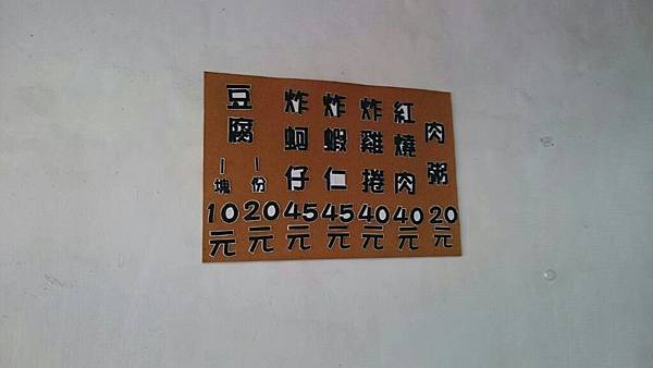 餐牌如下
