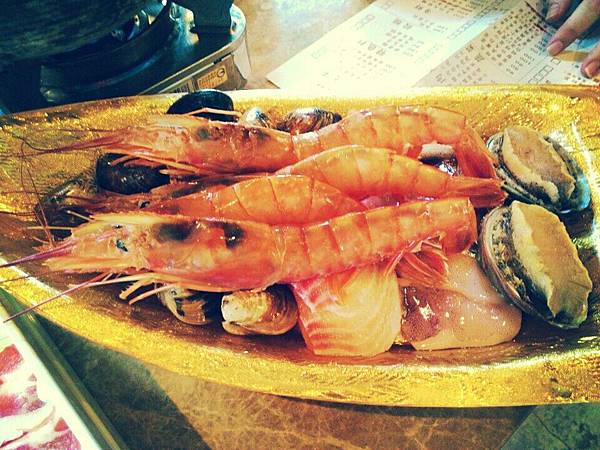 整個哇 足足有四隻大蝦 兩個鮑魚
